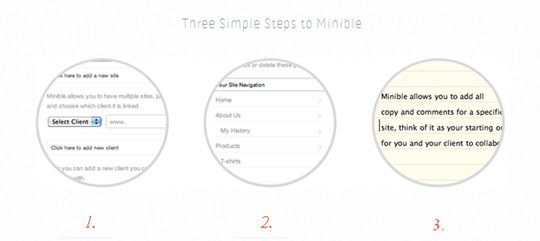 While working with clients you might found the process of having to collect web copy for a specific website a pain. Minible was a simple idea that solves this issue. The site itself is designed to be used by everyone and is also created in a way to get a client used to using a content management system and the idea of inputting data and then saving this.